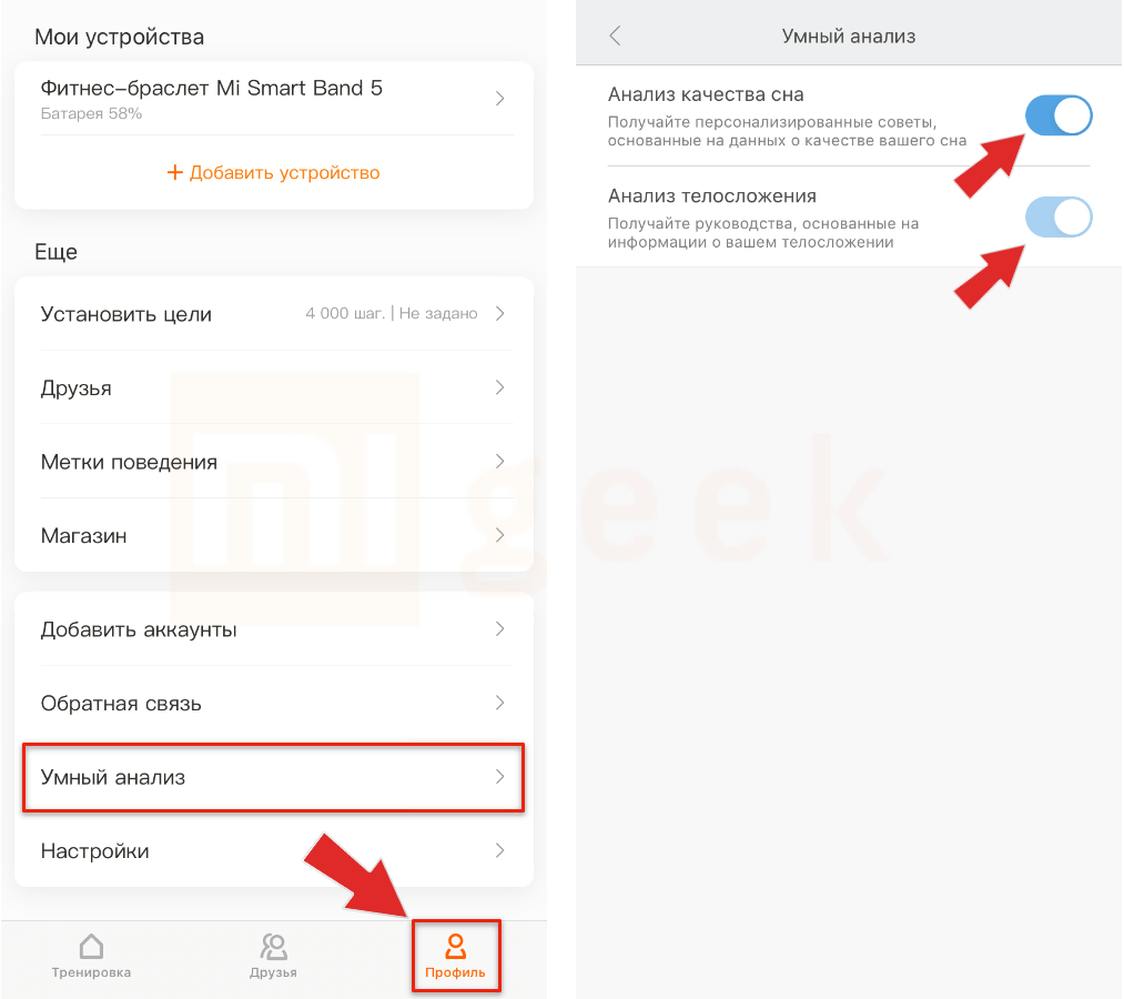Подключаем Mi Band 5 к приложению (от Mi Fit отвязывать не обязательно).