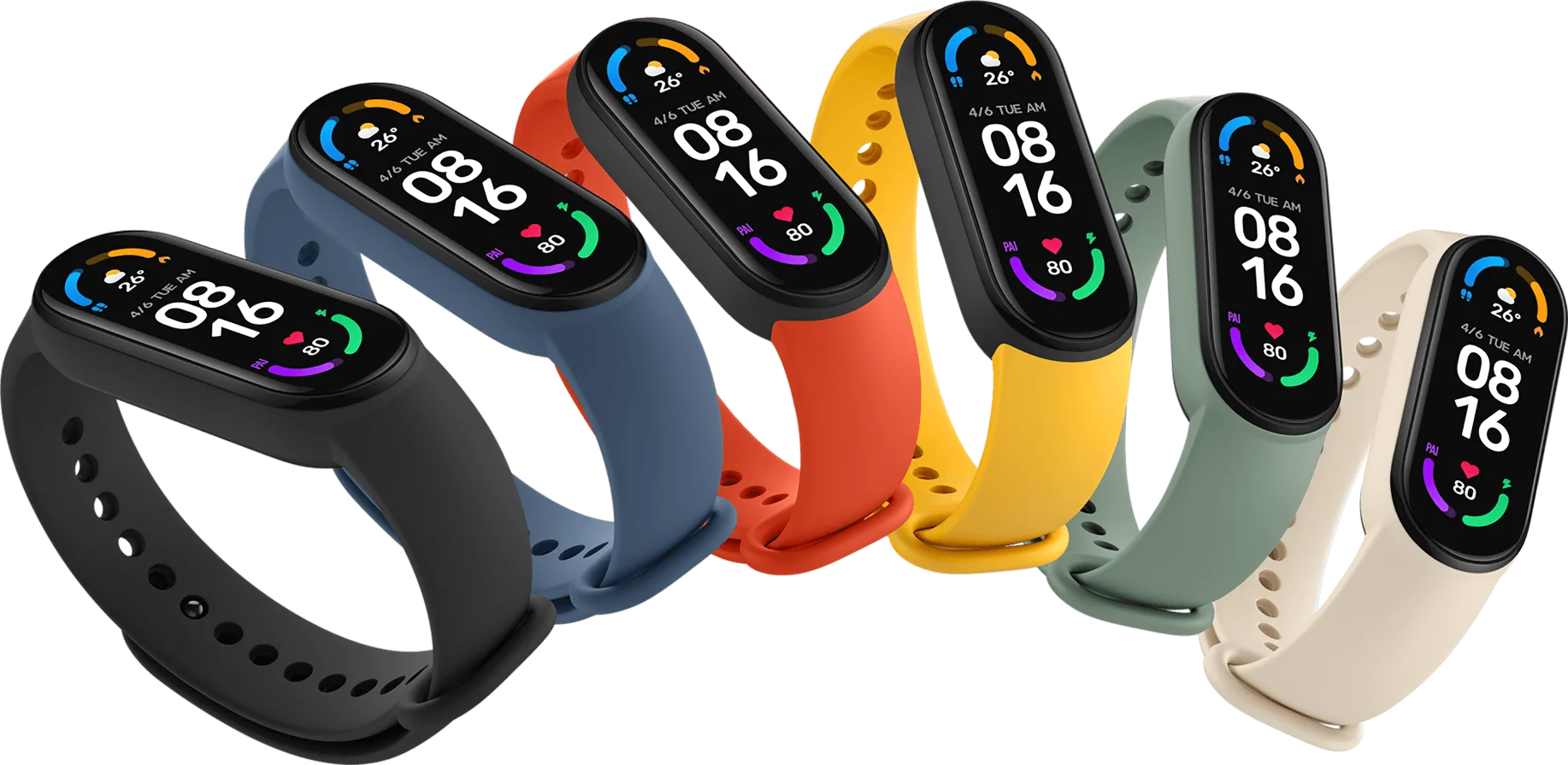 Если Mi Band 4 имел дисплей с диагональю 0.95″ и разрешением 240×120, то Mi Band 5 вырос до 1.1″ и 126×294 пикселей, а самая новая модель уже достигла предела, потому что дисплей занимает всю лицевую площадь гаджета и расти ему некуда, если только в следующем поколении не увеличат весь корпус, 1.56″ и 152×486 пикселей.