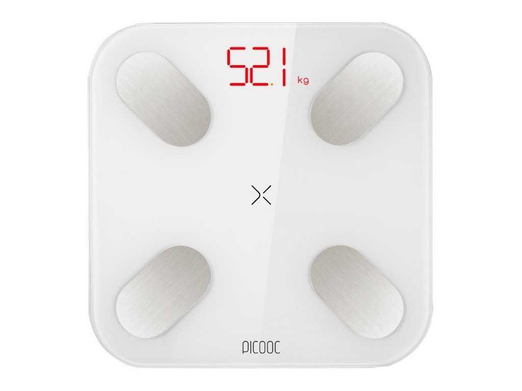 - Picooc Mini WH. Поддерживает 12 функций. Устройство дает рекомендации с учетом преследуемых целей. Правда, на дисплей выводится только масса тела. Для получения всех остальных данных нужно использовать приложение.