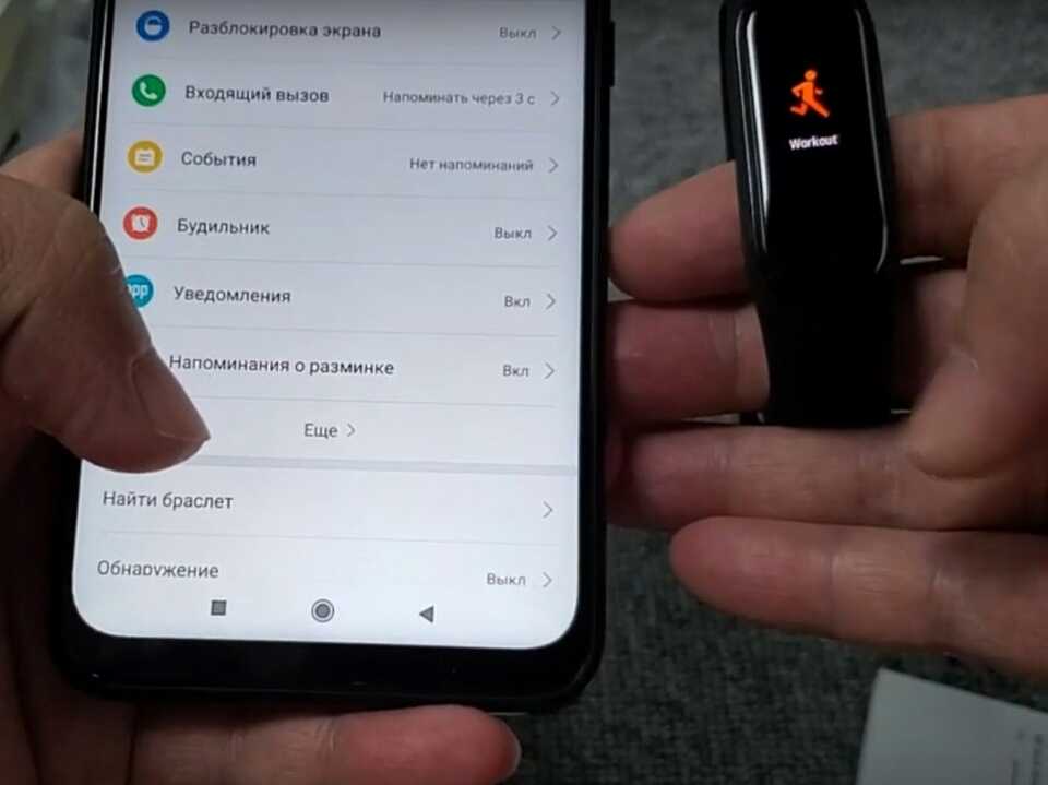 Режим обнаружения. Включение этой опции сделает браслет видимым для всех устройств в зоне покрытия Bluetooth (зачем это нужно, до сих пор не пойму).