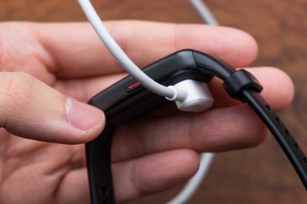 Зарядка осуществляется через кабель с магнитным креплением и поддерживается быстрая подзарядка. За 15 минут браслет с 0% заряжается до 50%, через полчаса уже можно наблюдать 75%, ну а далее процесс замедляется и дабы зарядить его до 100% — понадобится ещё полчаса. То есть в итоге полная зарядка занимает около часа, но, тем не менее, — это всё равно достаточно быстро.