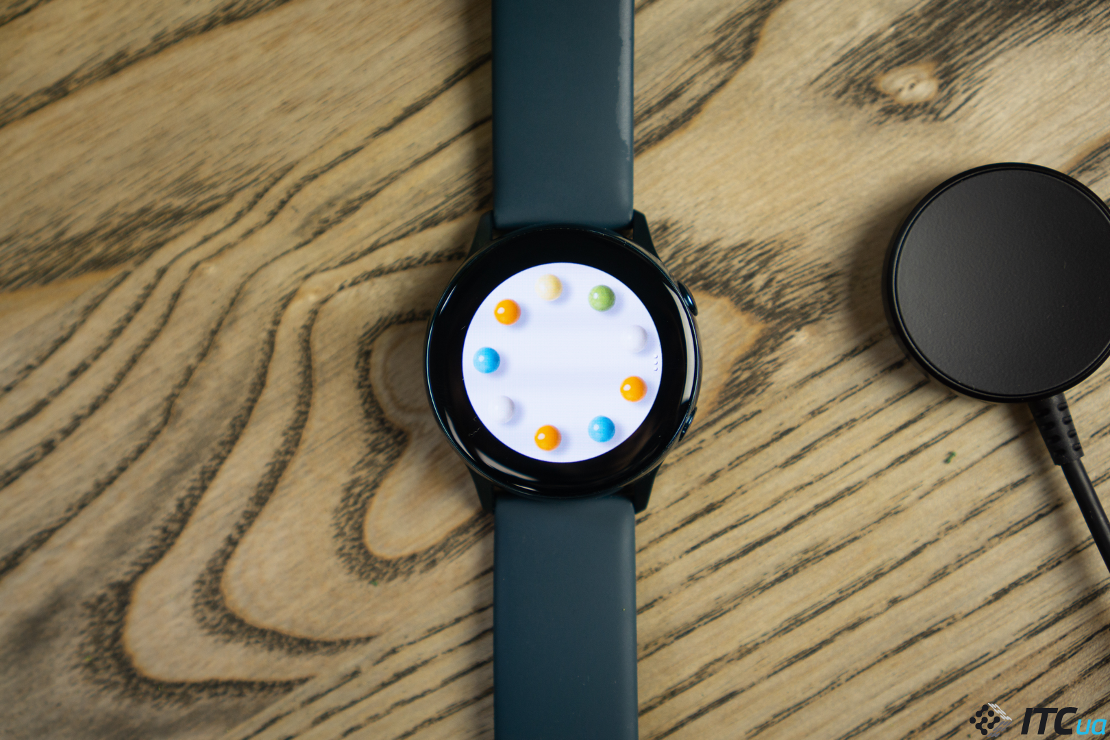 Galaxy Watch Active оснащены матрицей AMOLED с диагональю 1,1 дюйма и разрешением 360х360. Дисплей полностью круглый по форме, а по цвету сочный, яркий и контрастный, что неудивительно для такого типа матриц. С углами обзора полный порядок. Дисплей не очень велик по отношению к корпусу и его окружают рамки с заметной толщиной, но если выбрать какой-нибудь минималистичный циферблат, то это незаметно.