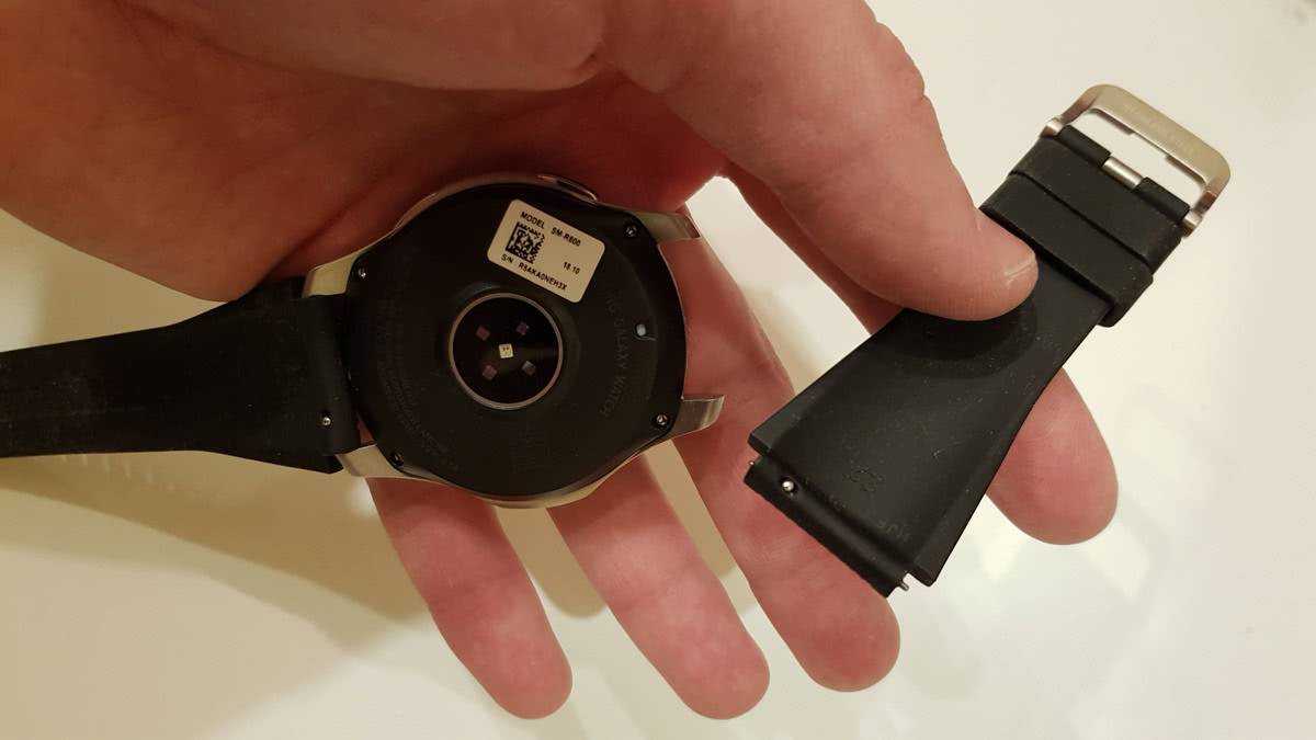 Ремешок съёмный, стандартный 20 мм, так что его можно будет снять без проблем подобрать сменный. Крепится, как и раньше, с помощью пружинного механизма. И часы, и ремешок у нас побывали чёрного цвета. В продаже уже хватает вариантов силиконовых ремешков разного цвета, как плоских, так и с продольным рельефом: