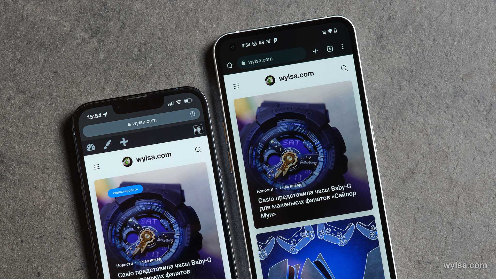Слева — iPhone 13 Pro, справа — Nothing Phone (1). Фото: Илья Кичаев / Wylsacom Media