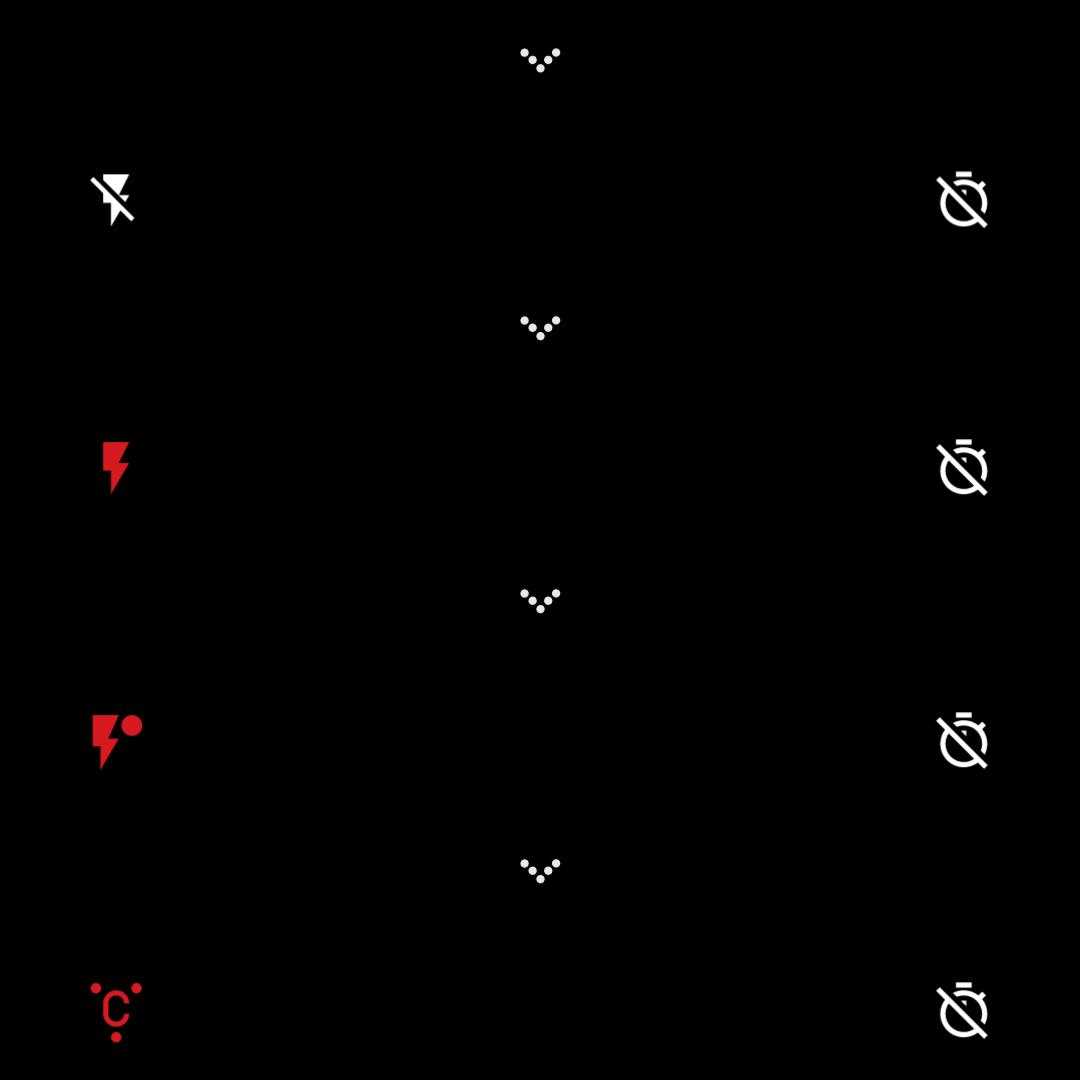 Сверху вниз: вспышка отключена, вспышка включена, вспышка включена постоянно, постоянно включена подсветка на задней панели