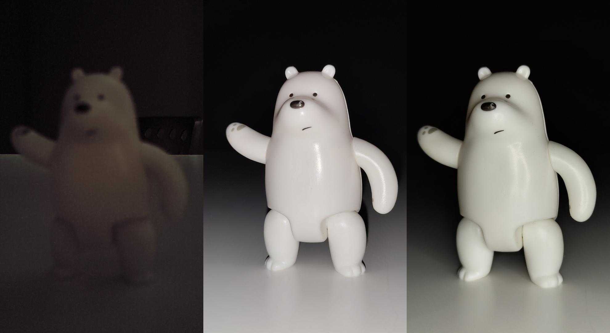 Есть ли смысл в этой подсветке при съёмке? Вот снимок одного Белого объекта в трёх режимах: ночной, вспышка и все 900 светодиодов: