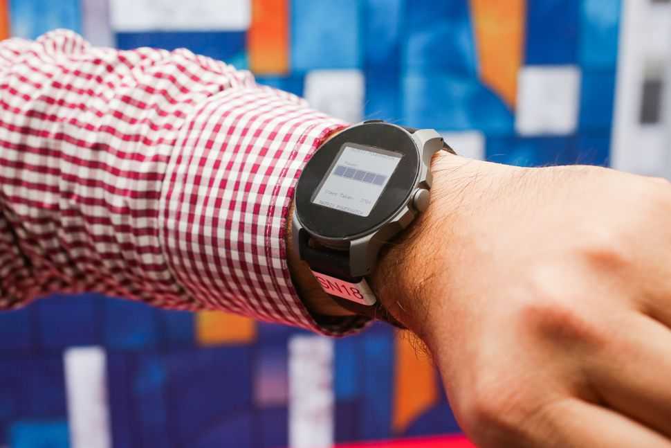 Испытание прототипа Matrix PowerWatch в офисе. Индикатор зарядки появился сразу, как только устройство было надето. Фото от CNET.