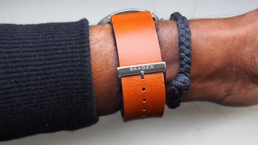 Though Skagen does seek to make this one you don’t feel you have to take off when it’s exercise time. The underside of the leather band has a more durable, workout friendly finish that we did wear for home workouts and runs and didn’t find it at all uncomfortable to wear.
