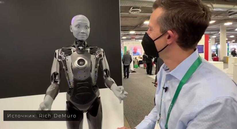Было и несколько интересных роботов. Amika имеет не только очень правдоподобную мимику, но и способен поддерживать разговор, не теряя зрительный контакт. А также он умеет распознавать объекты перед собой.