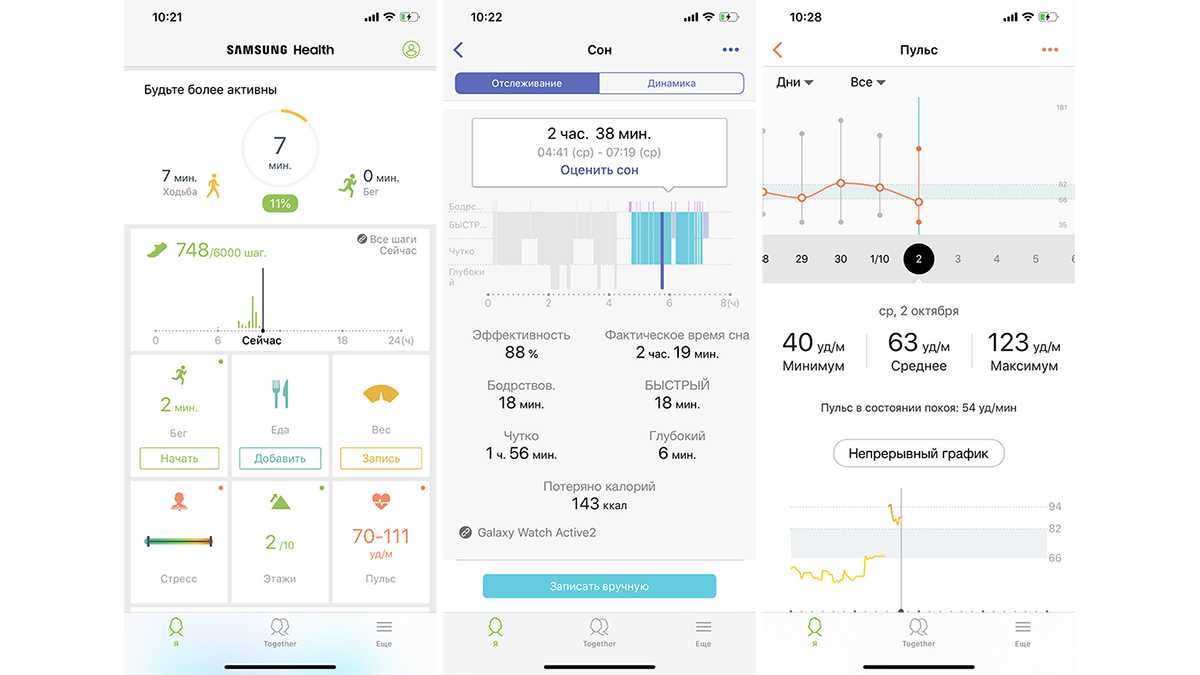 Galaxy Watch Active 2 совместимы с Apple техникой: начиная с iPhone 5 и выше, версия iOS 9.0 и выше. Однако часы не синхронизируются с родным приложением iPhone — «Здоровье». Для сбора статистики, вам понадобится дополнительное приложение — Samsung Health.
