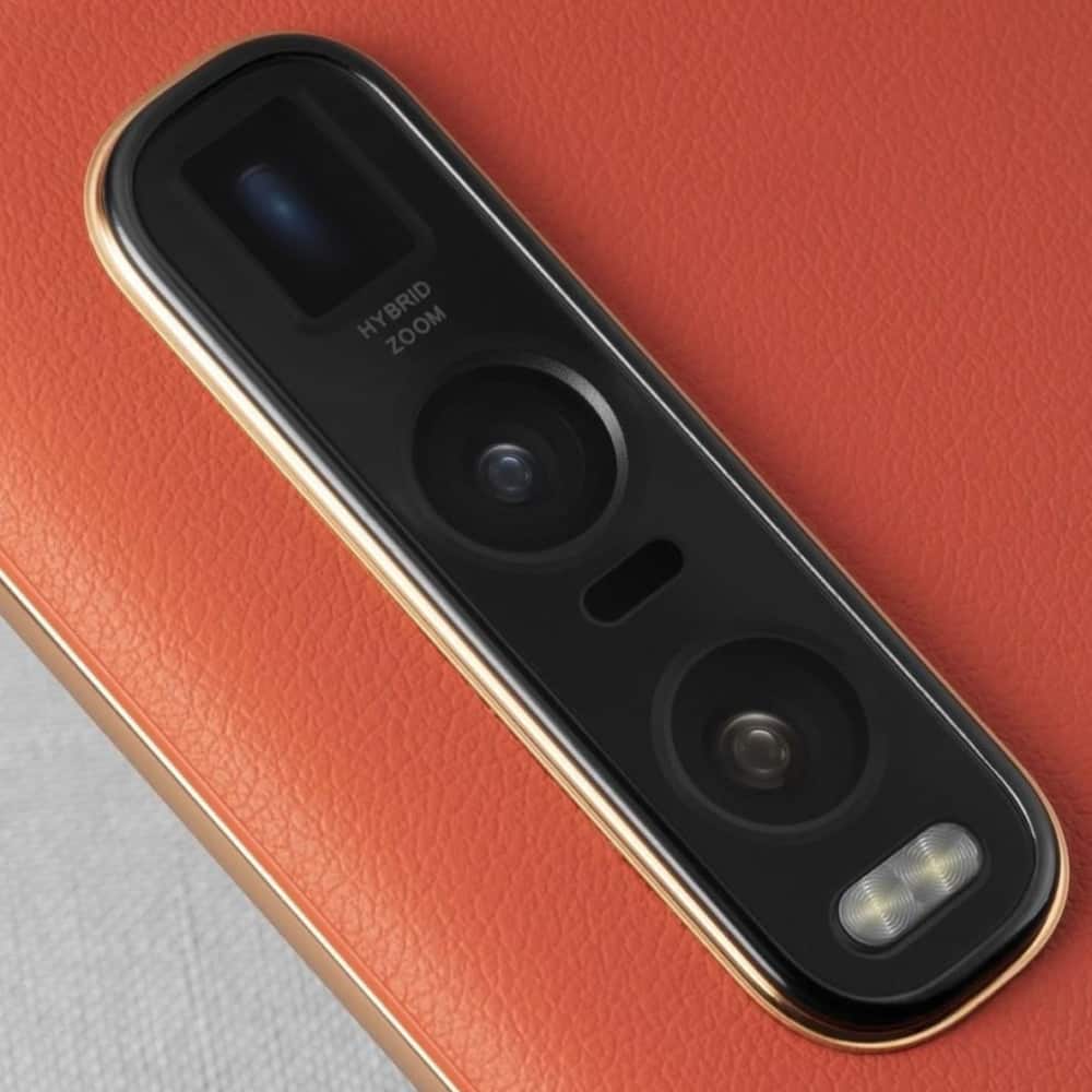 Oppo Find X2 Pro имеет довольно приличный по размеру модуля камер. Он не такой толстый, как на Samsung Galaxy S20 Ultra, но вызывает покачивание, когда устройство лежит на спине. На тестовой кожаной модели камера обрамлена тем же золотым акцентом, что и боковая алюминиевая рамка.