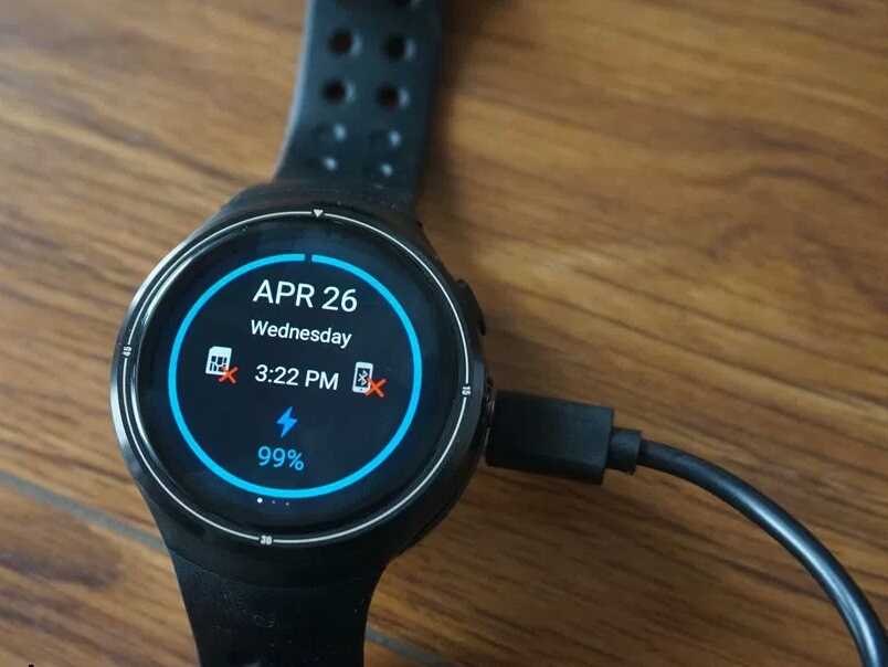 Кабель зарядки примагничиваться к контактам сзади уверенно, но поднять за него часы не выйдет